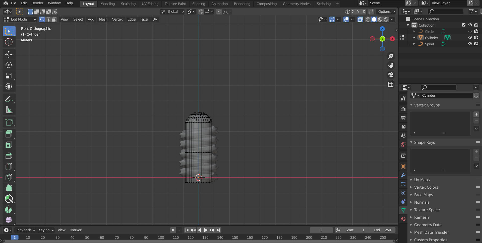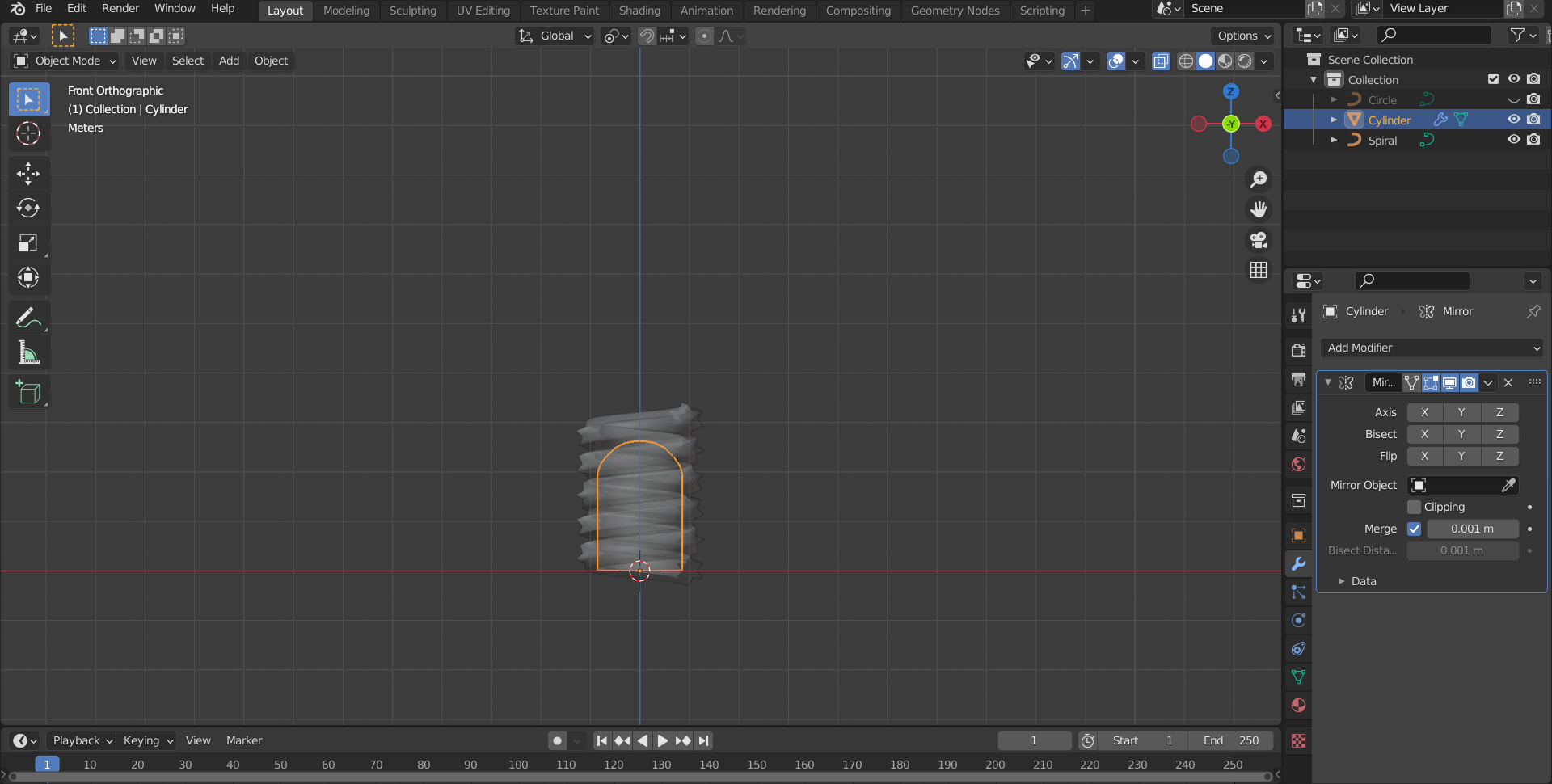- Object mode에서 Curve Spirals를 Mesh로 변환시켜준다.
