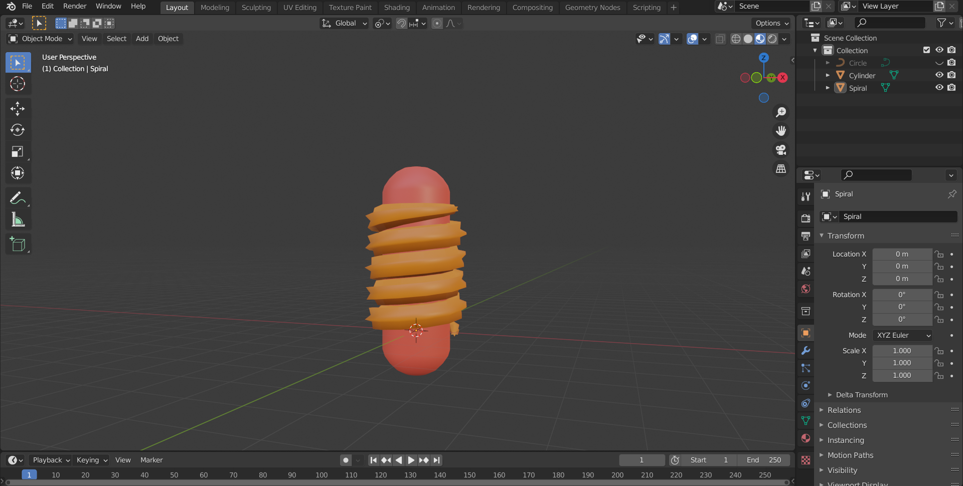 - 원하는 모양의 츄러스가 되었다면 Object mode로 이동한다.