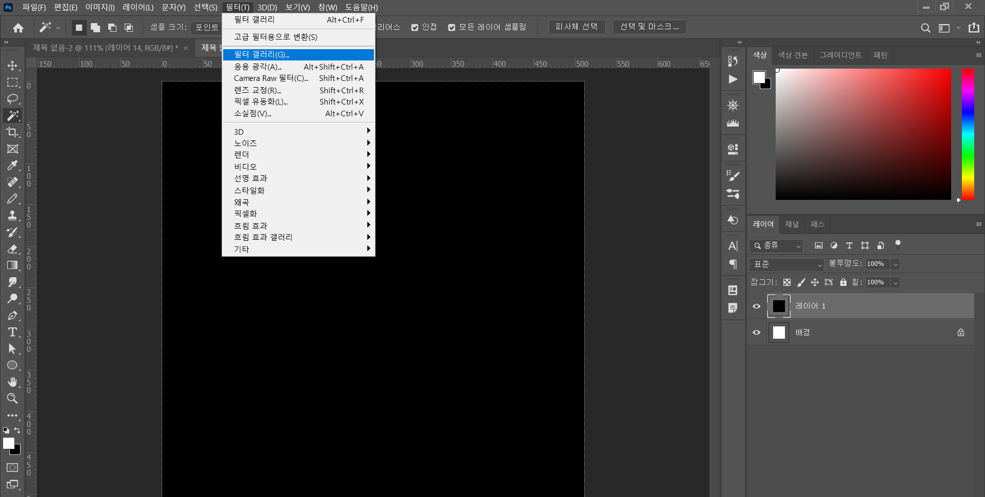 - 선택영역 확인 후 전경색으로 선택된 영역을 칠한다.