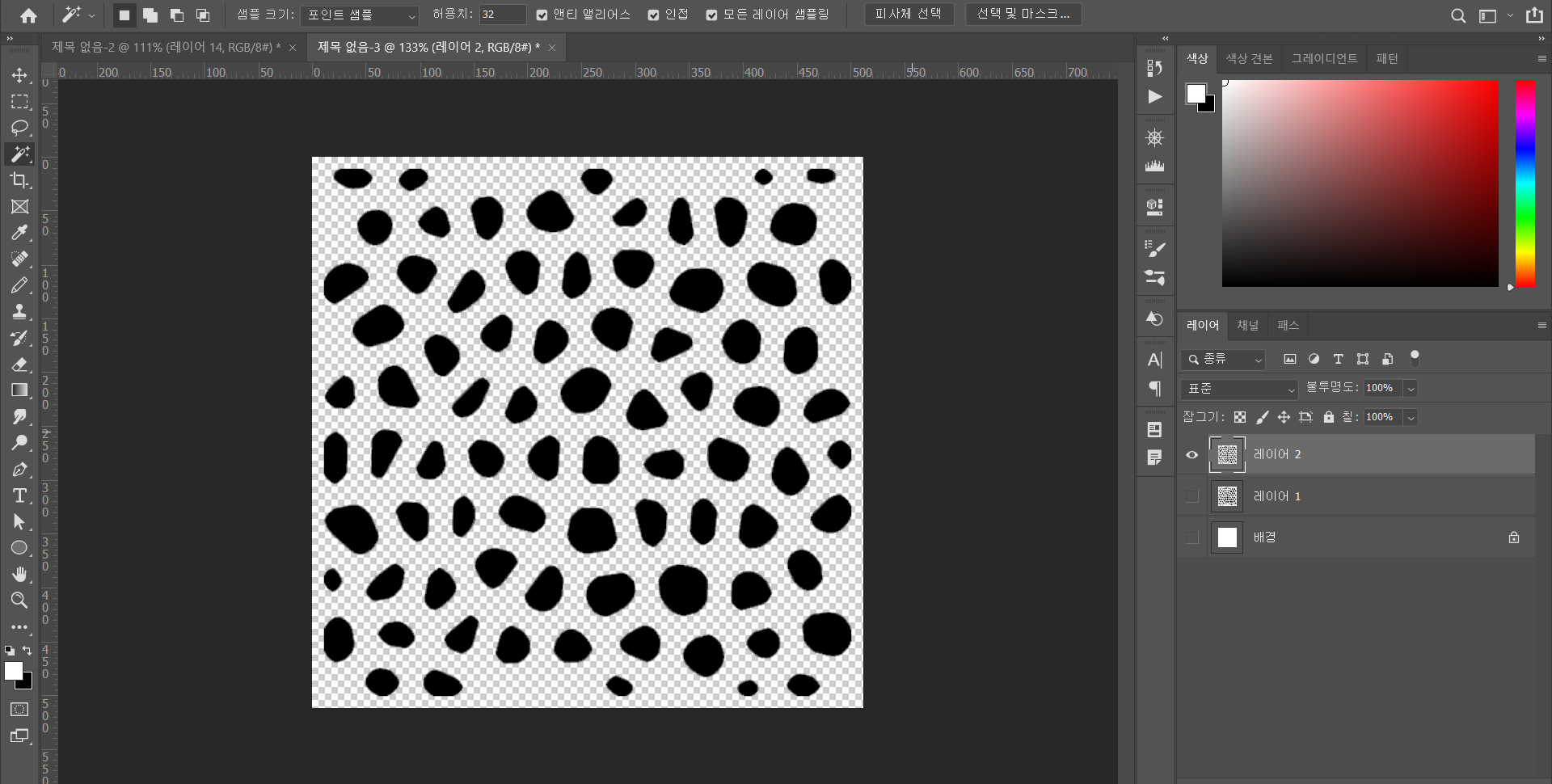 - 흰색 배경과 호피 무늬가 될 레이어를 합친다. (단축키 : Ctrl + E)