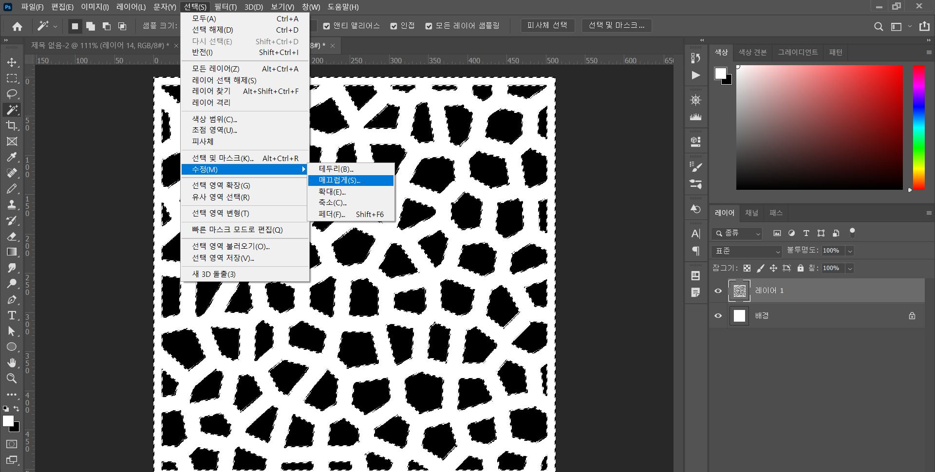 - 상단에서 선택 - 수정 - 매끄럽게 클릭