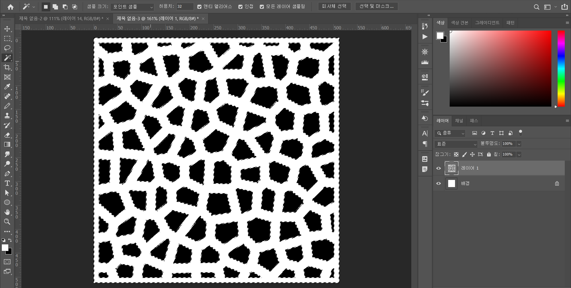 - 자동 영역이 설정가능한 마법봉으로 영역을 설정한다.