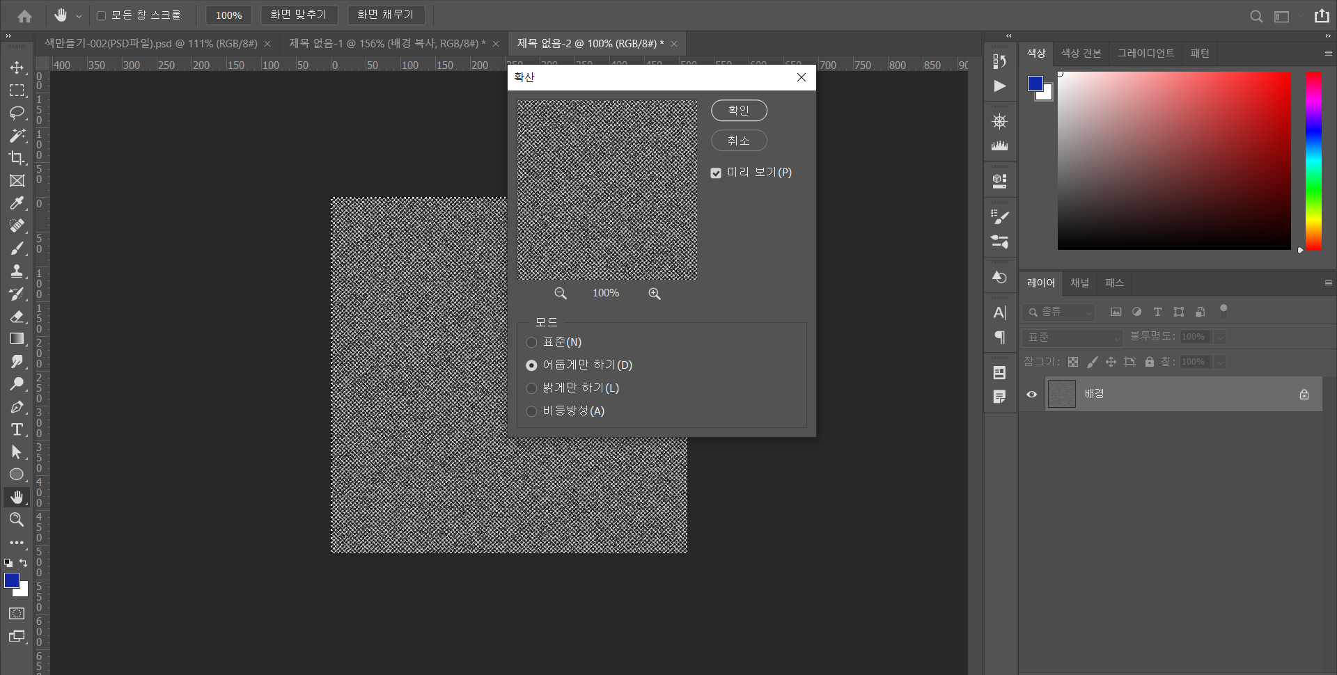 - 확산 모드 : 어둡게만 하기 선택 후 확인