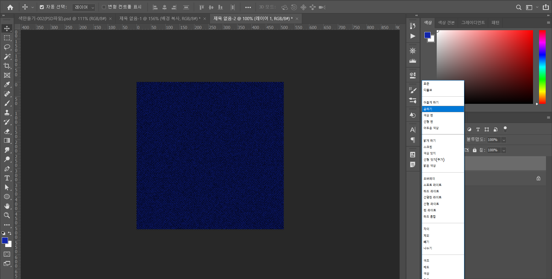 - 레이어 창에서 표준을 곱하기로 설정하기