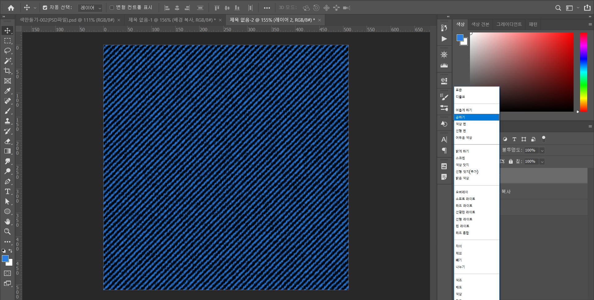 - 레이어 창에서 표준을 곱하기로 설정하기