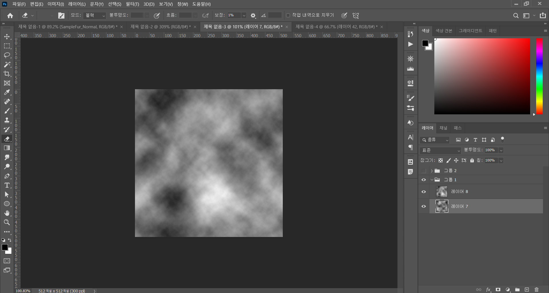 - 위와 동일하게 상단 필터 - 렌더 - 구름 효과 2 를 적용한다.