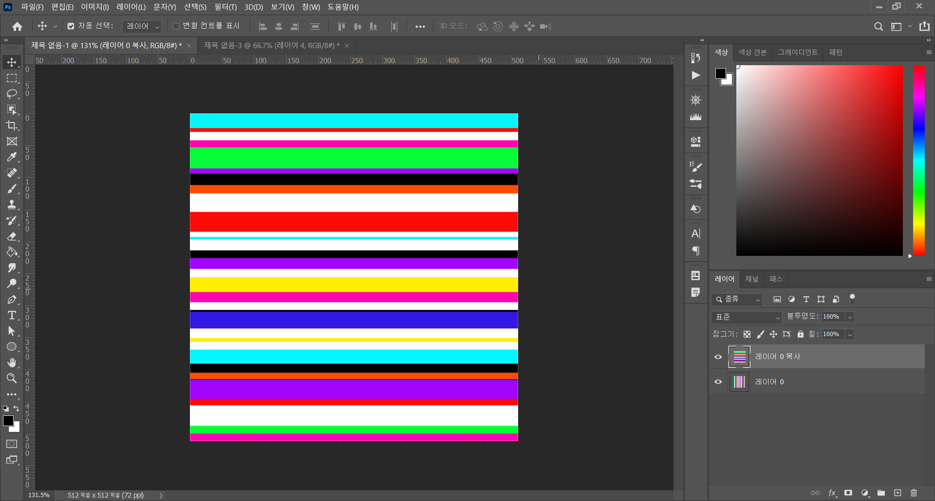 - 원하는 색상으로 칠해졌다면 레이어를 복사한다. (단축키 : Ctrl + J)