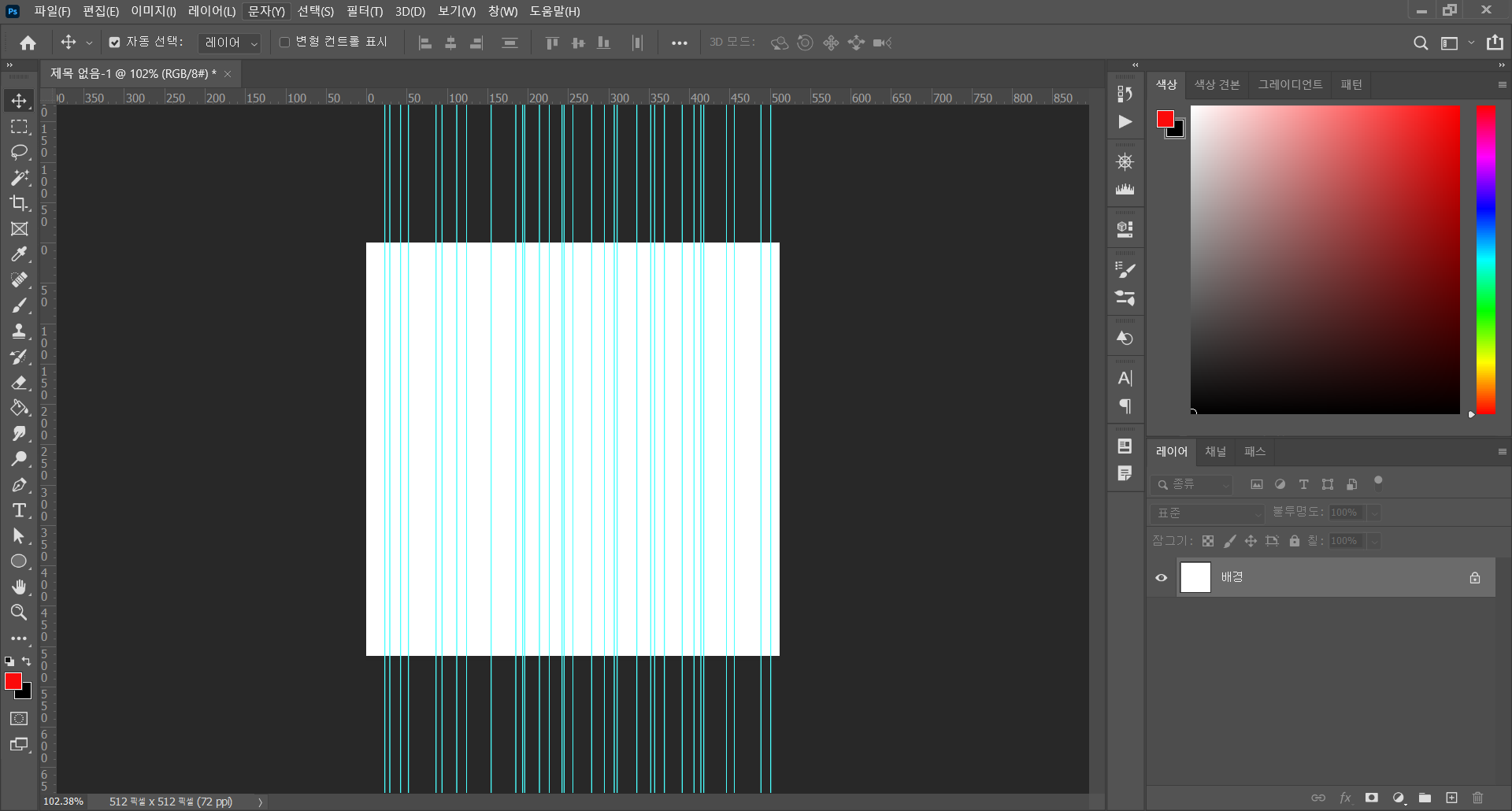 - 눈금자를 볼 수 있도록 설정한다. (단축키 : Ctrl + R)